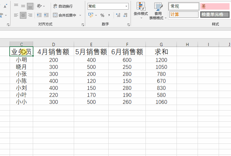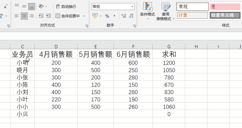 已知求和这一列是函数计算的结果,是自带公式的。