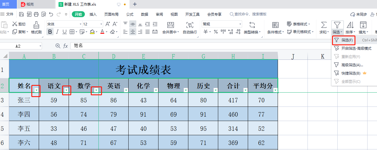 以“考试成绩表中的数据”为例。为了方便根据成绩的高低来查看记录,需要使用排序功能对指定列中的数据按成绩高低进行排序,今天讲述两种方法。