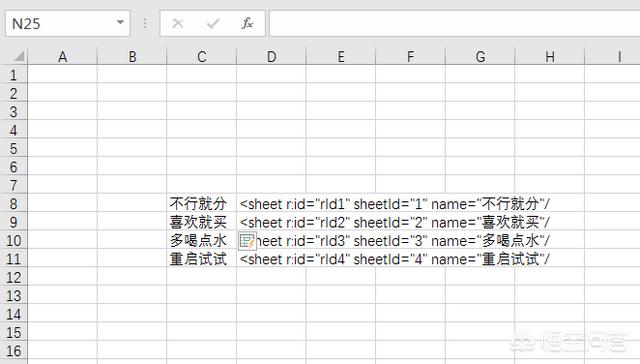 可以发现工作表名称以一种规范化方式存储在一起,如图所示。