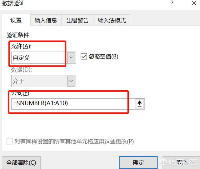 步骤4:在公式中输入=ISNUMBER(A1),这里单元格的区域,这里可根据自己的情况输入。