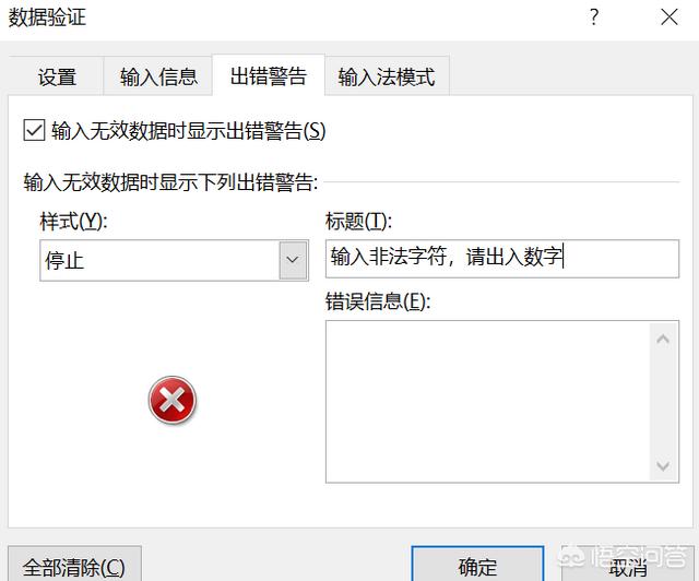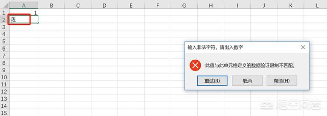 步骤5:如果在单元格输入非数字的时候,就会有警告提示窗口。