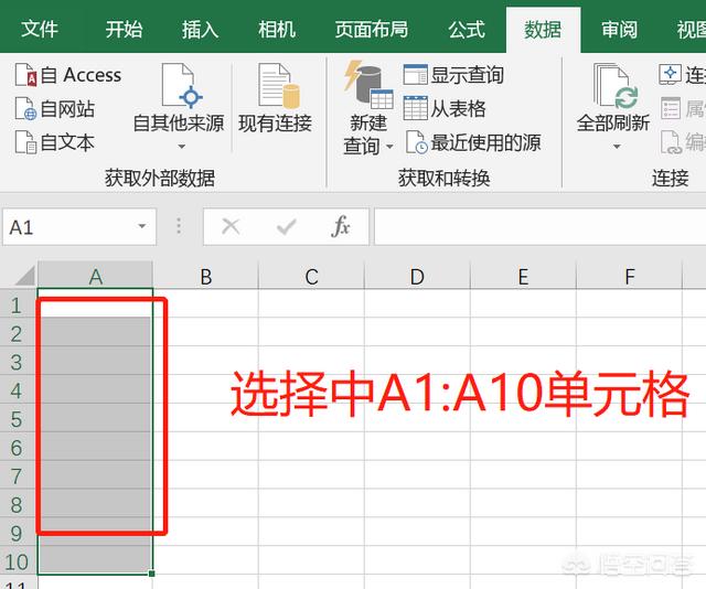 步骤1:首先选择要设置的单元格区域。即选择A1:A10单元格