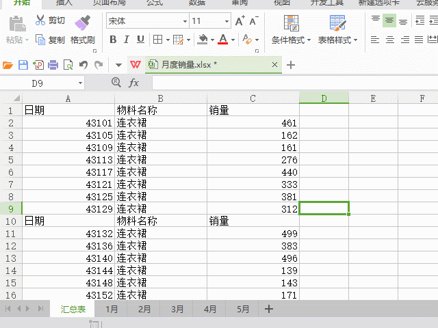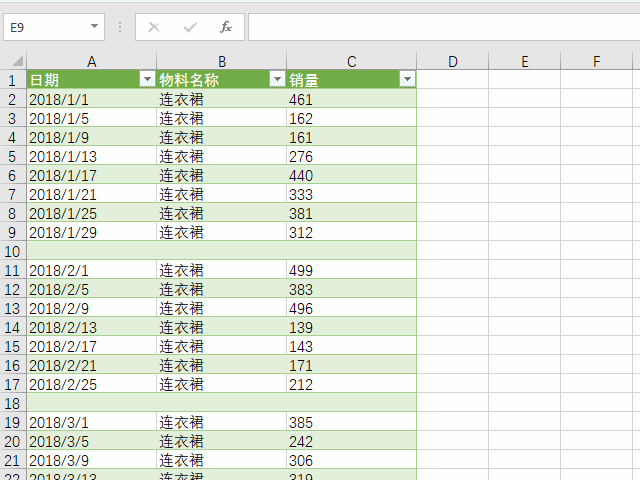 步骤2:复制A1-A9,将这些数据中的“1月”替换成“2月”、“3月”等。