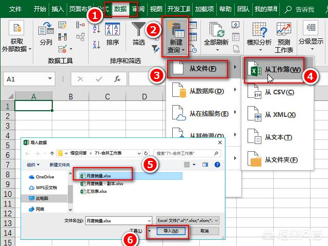 步骤1:如图,新建查询,选择从“工作簿”导入,并选择需要合并的工作簿。