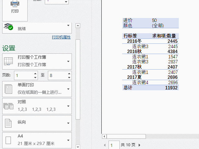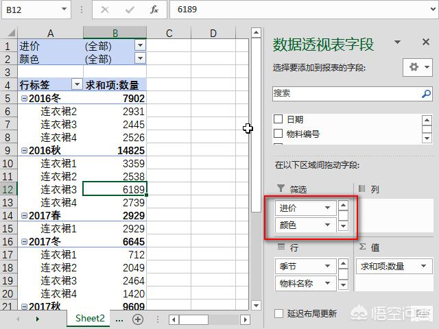 将你需要拆分的组放在“筛选”字段下。例如,你需要按照“进价”进行分组,并打印每种进价下的数据,就将“进价”放在“筛选”下。