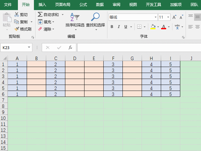 如下GIF图所示,选中所有单元格,同时按住Ctrl + G调出定位窗口,点击“定位条件”——“空值”,这样可以选中所有的空白单元格;最后删除整列即可。