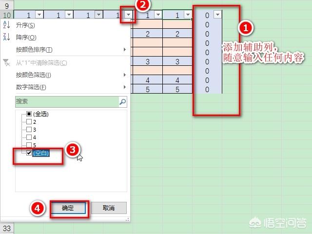 步骤2:添加一个辅助列,随意输入任何内容,接着筛选出“空白”来。
