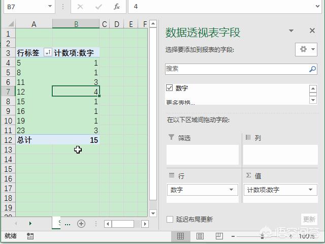 使用数据透视表好处:当原始表格数据有变化时,只要在数据透视表上点击“刷新”或“更改数据源”,就可以自动提取新数字中的不重复数据进行统计并排序。
