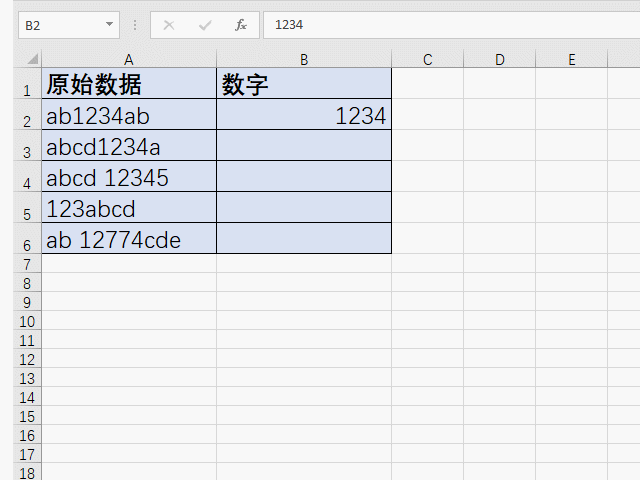 这个方法可以一键提取出数字,不过仅Excel2013及以上版本可以使用。步骤如下: