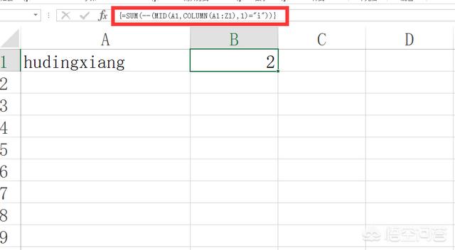 如下图所示,在excel中我们需要快速地得到A1单元格字符串中到底有多少个字母“i”,该如何快速解决这个问题呢?