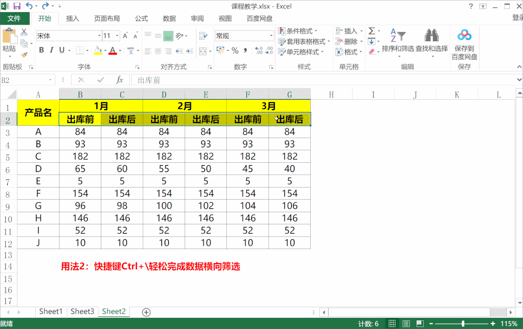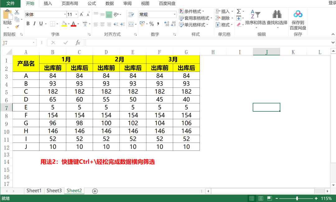 用法2:快捷键Ctrl+\轻松完成数据横向筛选