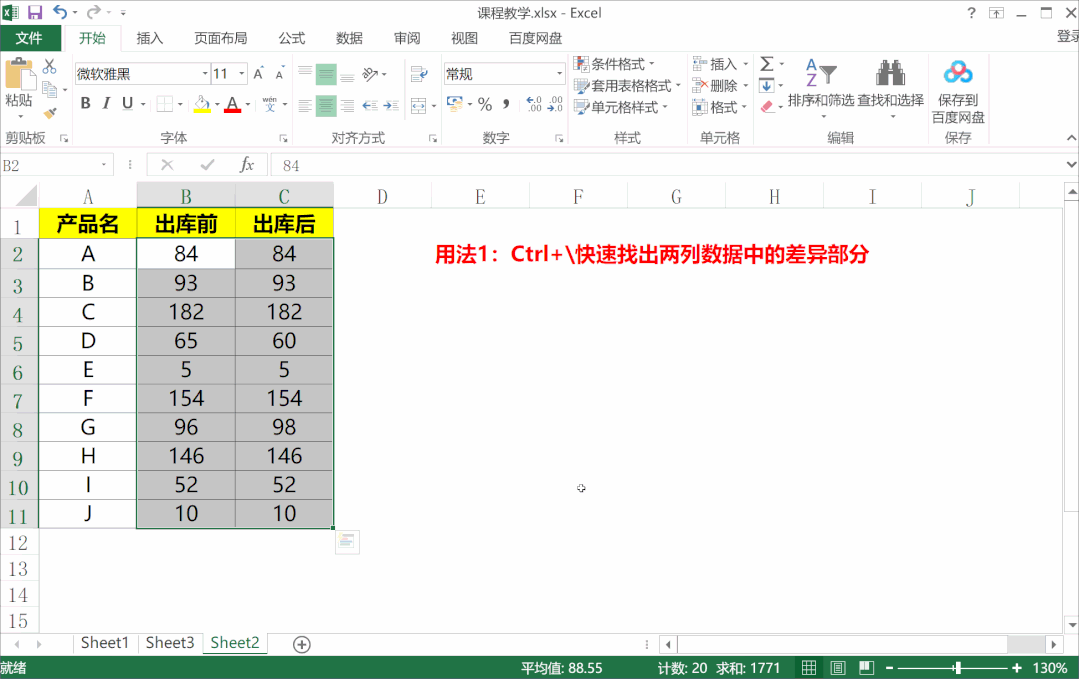 用法1:Ctrl+\快速找出两列数据中的差异部分