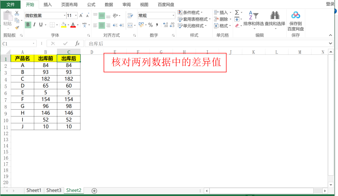 第1步:我们鼠标选择需要复核的两列数据区域B2:C11;