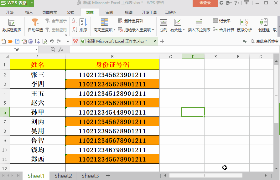 excel身份证号码查重,当需要将重复的数据全部显示出来时,我的思路是,利用软件自带的查重工具将重复的号码用不同的颜色标示出来,再利用颜色筛选,则可将所有的重复号码放在一起进行下一步的处理,具体如下: