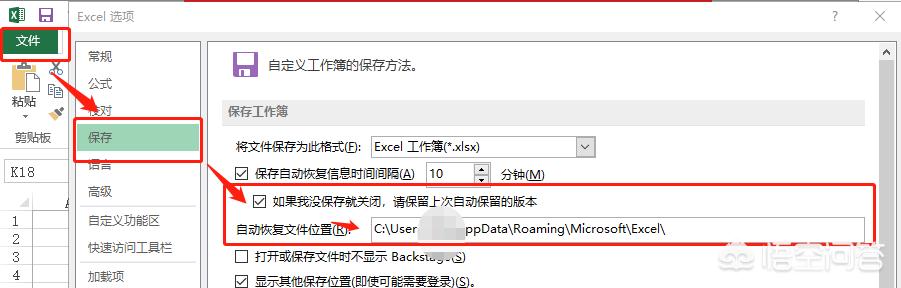 再在左侧选择【保存】功能,找到下方的【自动恢复文件位置】