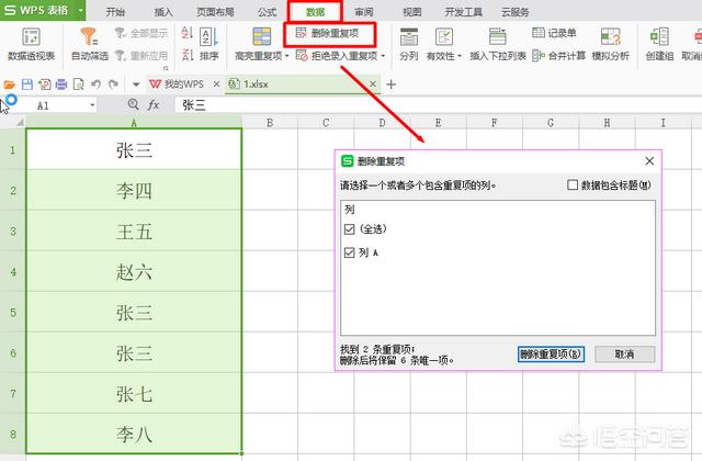 譬如A列有张三,B列也有张三,只要求将A列的删了,不删B列,则我们只要将A列选中再删,不用拓展全体数据即可。