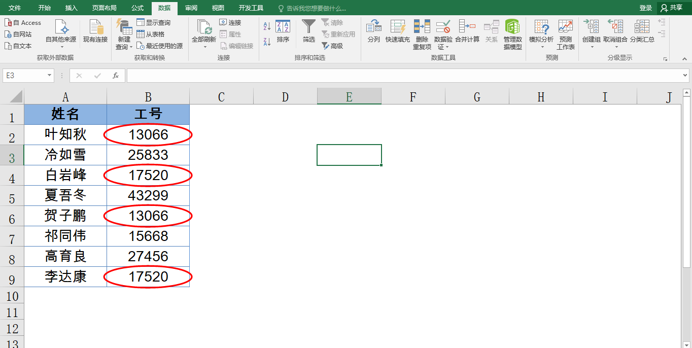 通常情况下,用户使用数据验证来验证限制输入的内容,对于已经输入的内容,也可以使用圈释无效数据功能,方便地查找出不符合要求的数据。主要以案例圈出重复员工工号跟大家分享。