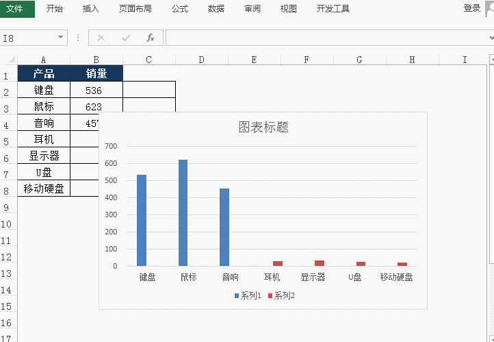 在制作Excel柱形图时,有时会出现数据之间的差异很大,导致在柱形图中某些数据显示不明显。影响图表美观。如下:
