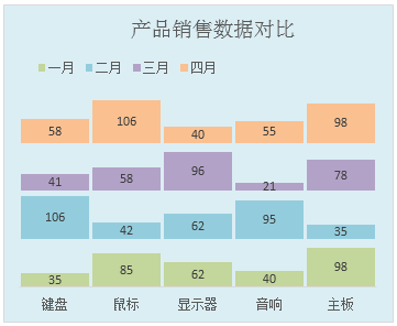 今天跟大家分享如何在一张excel图表中包含多张柱形图的制作方法,最终完成的图表如下: