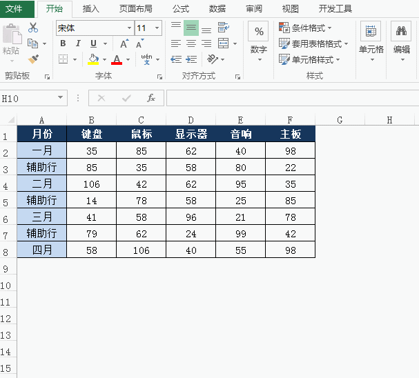 1,增加辅助数据行