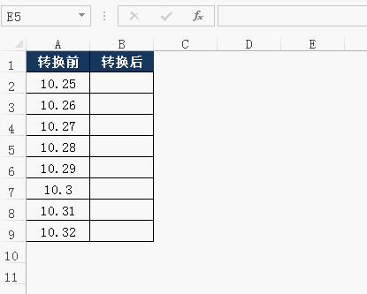 如下图所示,将不规范的数据,快速修改成时间格式的数据。