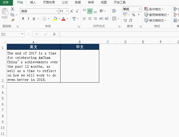 其中公式中的“&A2&”,表示的是需要翻译的内容所在的单元格。