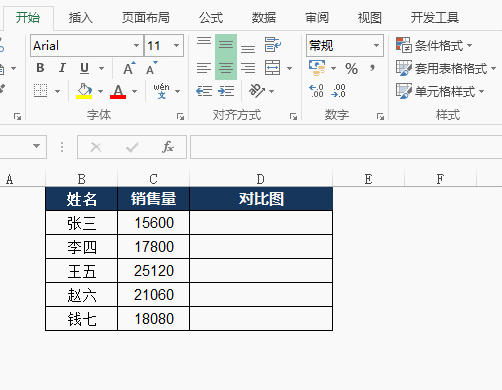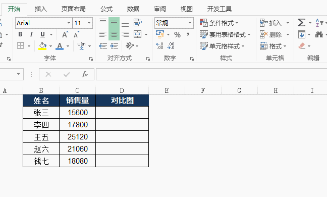 - 新建“对比图”栏,且是该栏的数据与“销售量”栏的数据一致