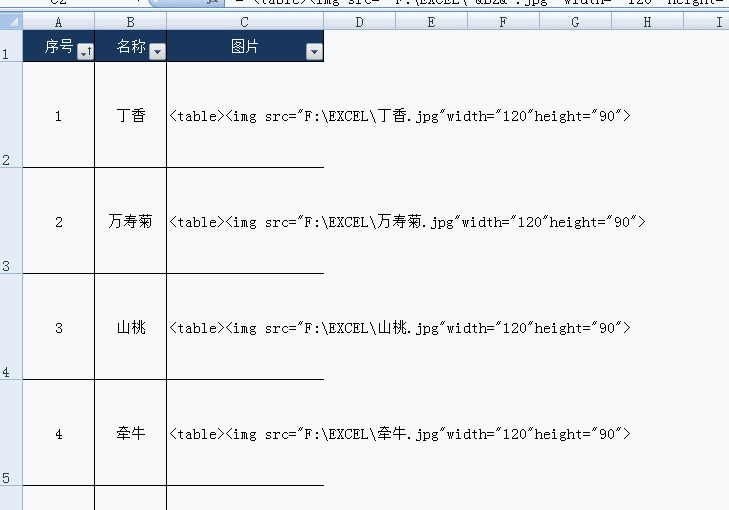 =”<table><img src=””F:\EXCEL\”&B2&”.jpg””width=””120″”height=””90″”>”