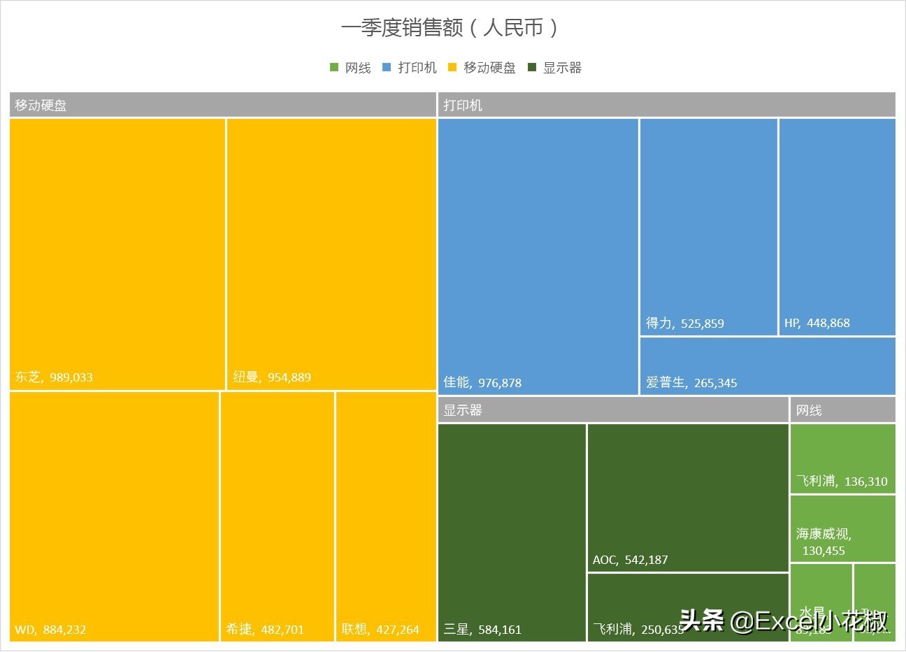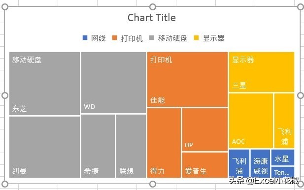 Excel 2016 的图表中,新增了一个“树状图”。这可是个绝对让你长脸的好图表,版本够高的小伙伴,可千万不要暴殄天物。