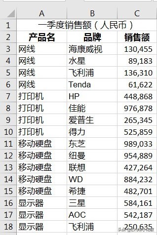 下图 1 表格为某硬件商一季度的产品销售额,请用可视化的形式让老板快速了解销售情况。
