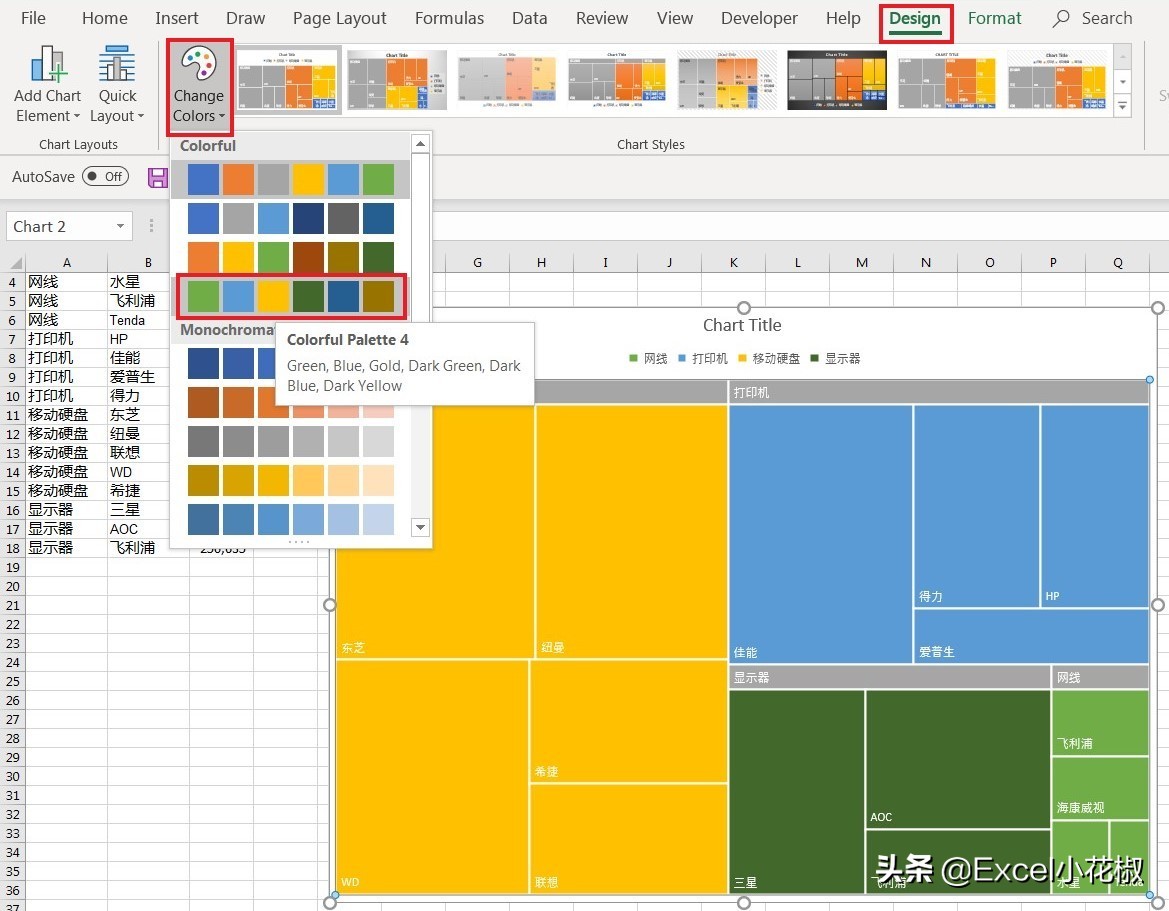 6. 选择菜单栏的 Design –> Change Colors,选择所需的配色