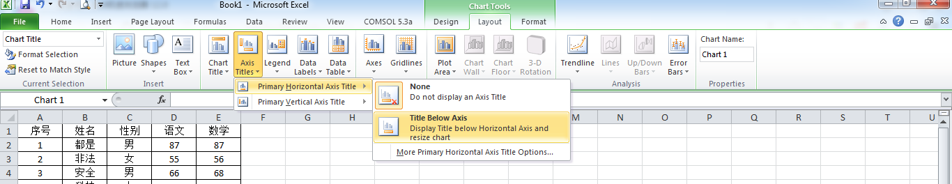 4.1 添加水平轴标题,点击布局-轴标题-水平轴标题-轴下的标题
