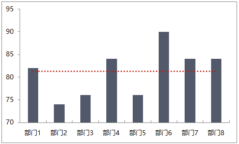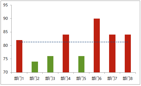 给柱状图标上平均线后,可以很清楚地看出哪些部门的数值高于或低于平均水平。