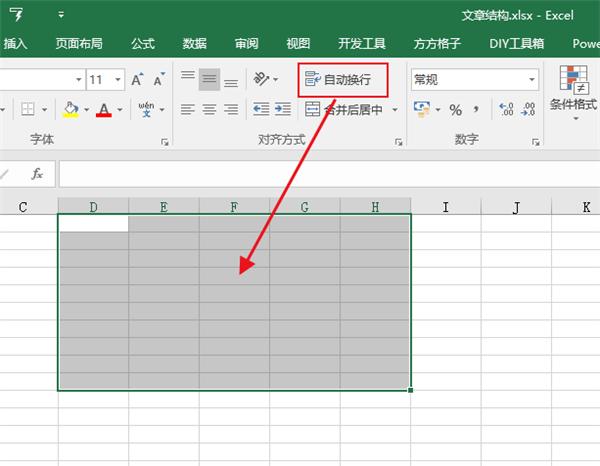 首先我们在输入数据前先选中一片区域,然后还是点击【自动换行】,设置完成之后只要在这片区域的任何一个单元内输入数据,一旦数据部分超出了单元格就能实现自动换行了!是不是超级方便?别急还有其他方法可以实现高效快速换行呢!