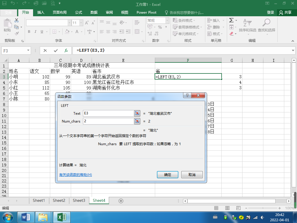 某地需要从家庭住址中提取所在省份,本例中,由于省份位于地址的开头位置,可以用LEFT函数提取家庭住址中的省份。