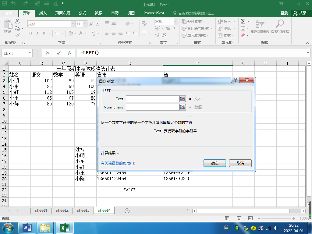 取值:必需参数,是指从左边向右开始截取的字符数。如果为0,返回零长度空字符串(“”)。如果大于或等于“字符串”的字符数,则返回整个字符串;如果省略该参数,则默认取值数为1。