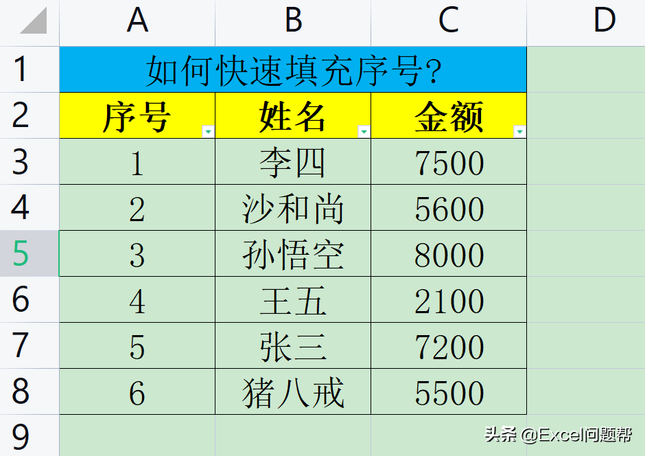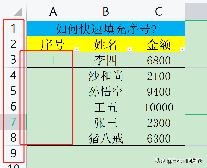 来看今天的问题。日常工作中,我们经常要用到序号,那么对于快速填充生成序号你是如何做的呢?超多行数的序号你是否还在依靠简单下拉生成呢?而尤其是在电脑配置不高或者数据量大时候,是否感觉到单纯的下拉时常卡顿,完全无法满足自己的办公需要?更是在添加或者删除行的时候,不得不重新编号,这些是否都让你不厌其烦呢?