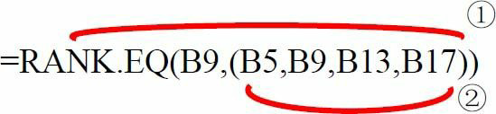 =RANK.EQ(B9,(B5,B9,B13,B17))