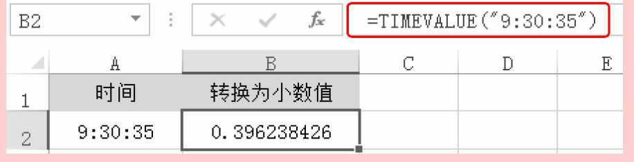 返回A2单元格中指定时间格式的“9:30:35”为小数值
