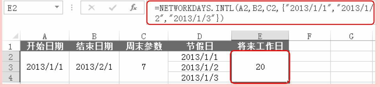 holidays应是一个包含相关日期的单元格区域,或者是一个由表示这些日期的序列值构成的数组常量。holidays中的日期或序列值的顺序可以是任意的。