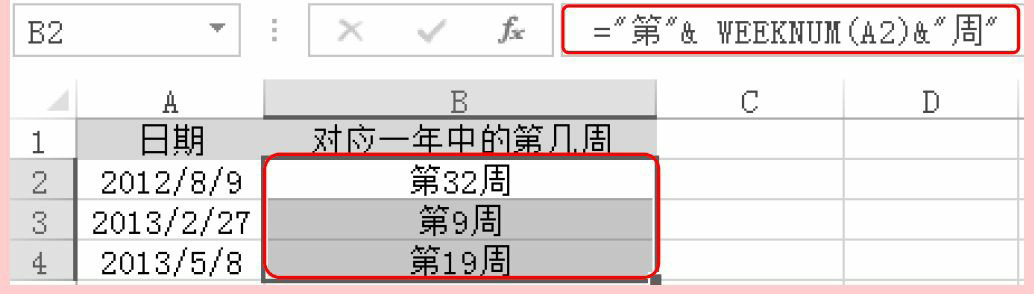 ②使用连字符“&”将其与“第”和“周”连接起来,形成第几周的格式。