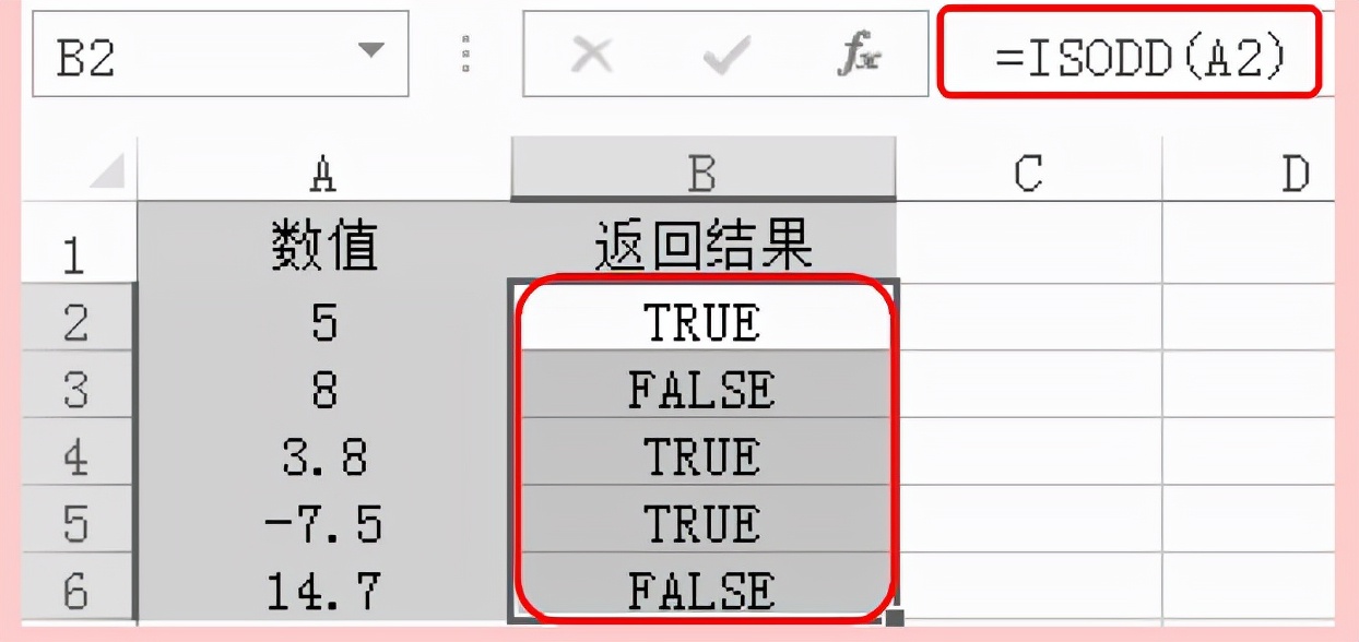number:表示待检验的数值。如果number不是整数,则截尾取整。如果参数number不是数值型,函数ISODD返回错误值“#VALUE!”。