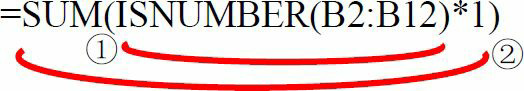 ②对B2:B12单元格区域中的数字显示值进行个数统计。