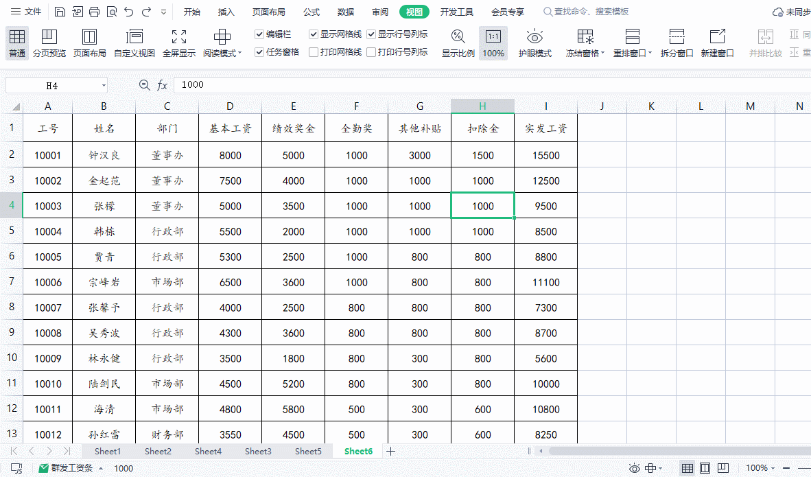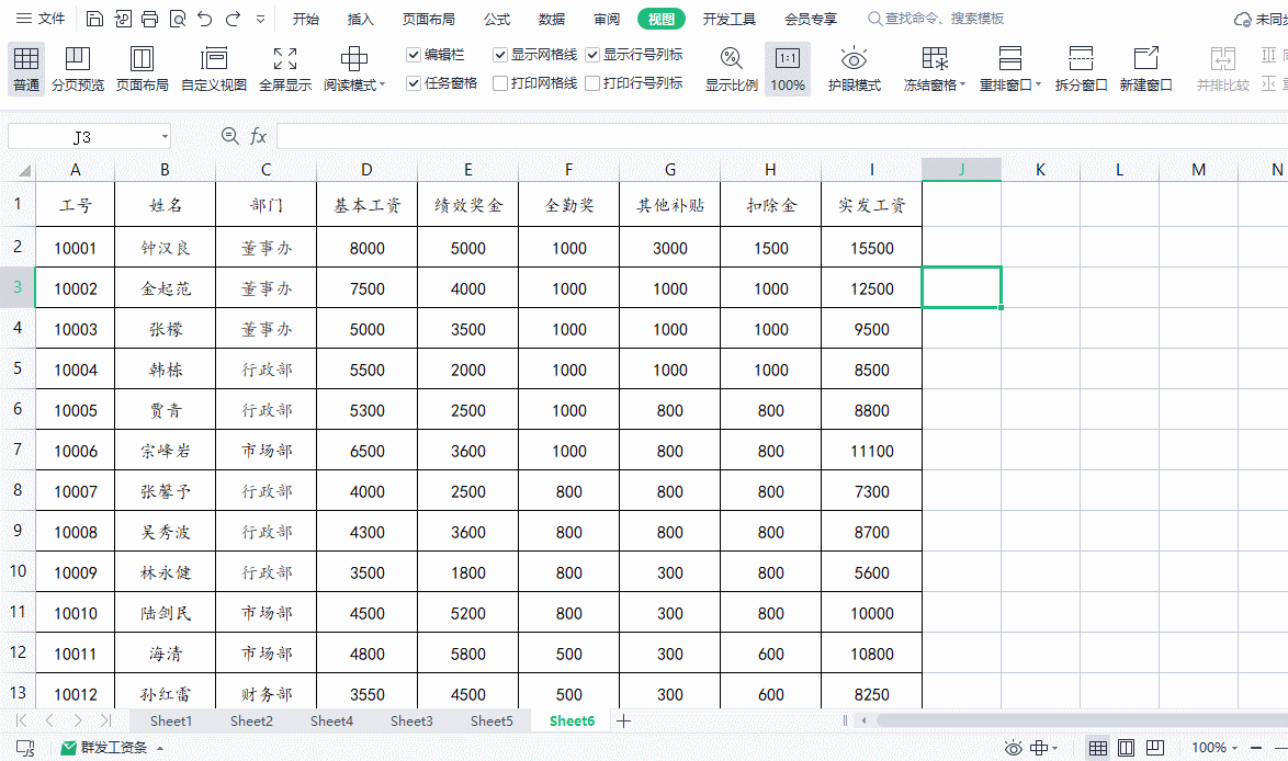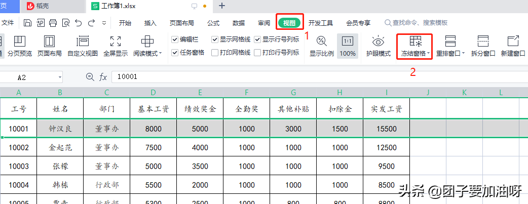 一、如何固定表头?
