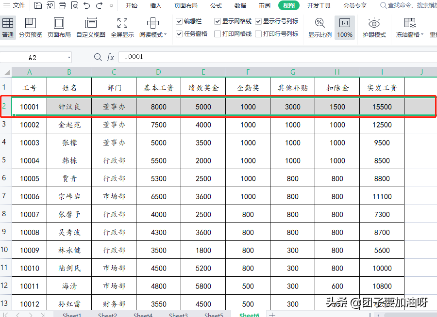 三、如何能够同时看到首行标题和尾行数据的?