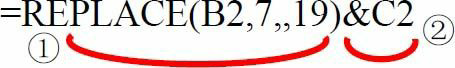 ①将B2单元格中的数据从第7位开始,把0个字符替换为19,即从第7位中插入19。