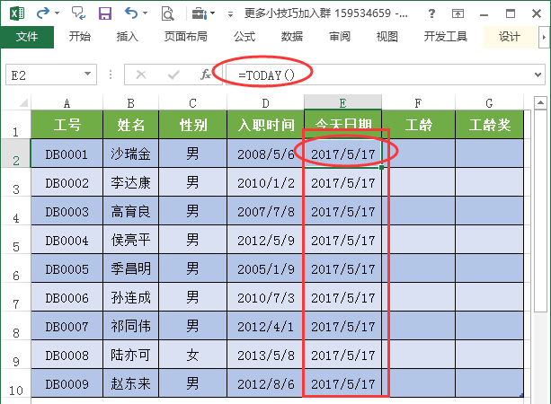 1、首先要知道有个函数=TODAY(),是得到当前日期,在单元格输入这个函数,第二天打开文件后,这个日期会自动变化,这样算出来的工龄就会自动更新了,不用每个月重新计算。