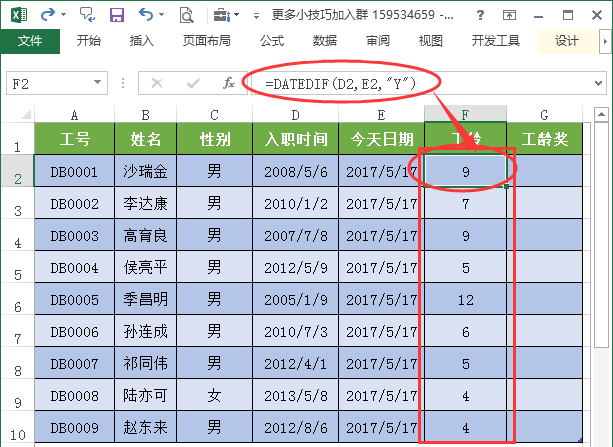 现在你是否感觉计算员工工龄和工龄奖很简单呢?