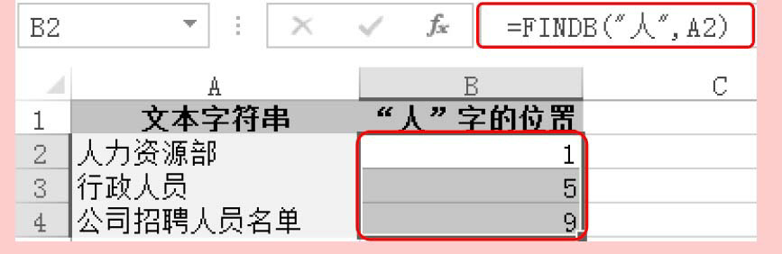 FIND函数与FINDB函数的区别在于,前者是以字符数进行计算的,