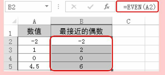按“Enter”键即可根据A2单元格的数值返回与它最接近的偶数。